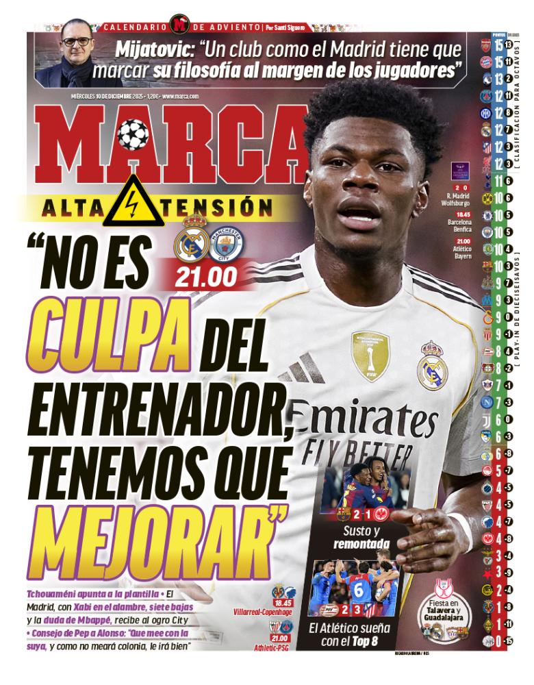 El Real Madrid - Manchester City protagoniza las portadas deportivas