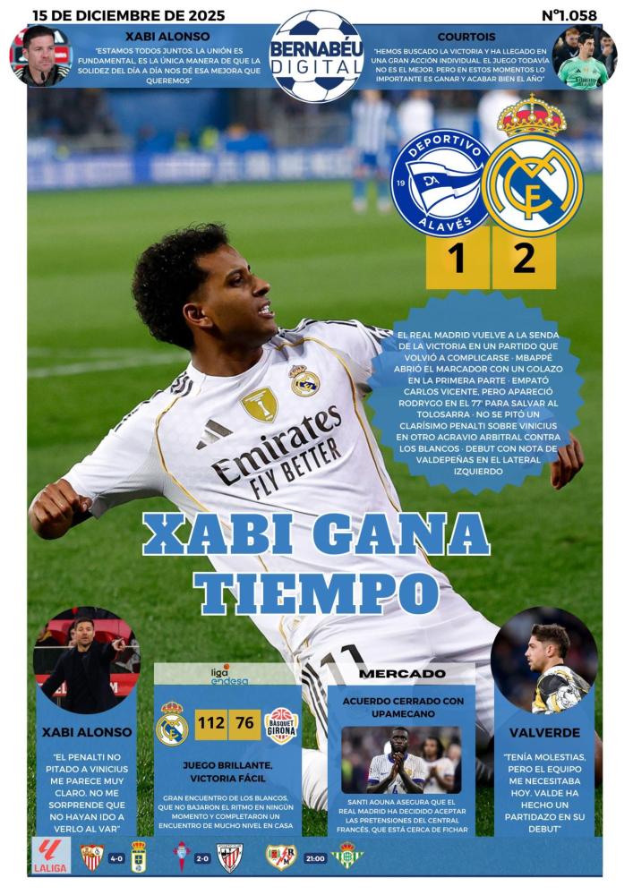 En nuestra portada de este lunes 15 de diciembre de 2025, en Bernabéu Digital hemos decidido abrir con el Alavés 1-2 Real Madrid.