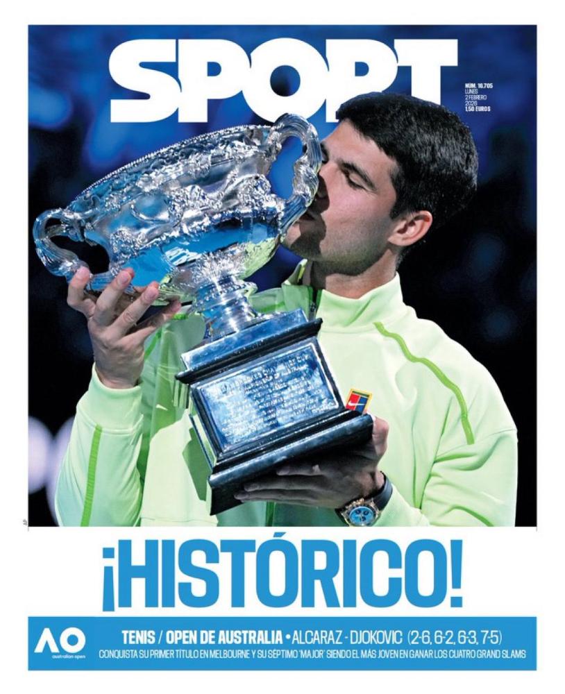 El Sport abre en primera plana con el triunfo histórico de Carlos Alcaraz ante Djokovic en el Abierto de Australia. Sin hueco para el fútbol.