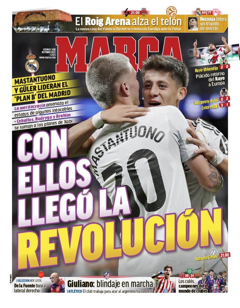 Güler, Mastantuono y Militao, entre los protagonistas de las portadas del 3 de octubre