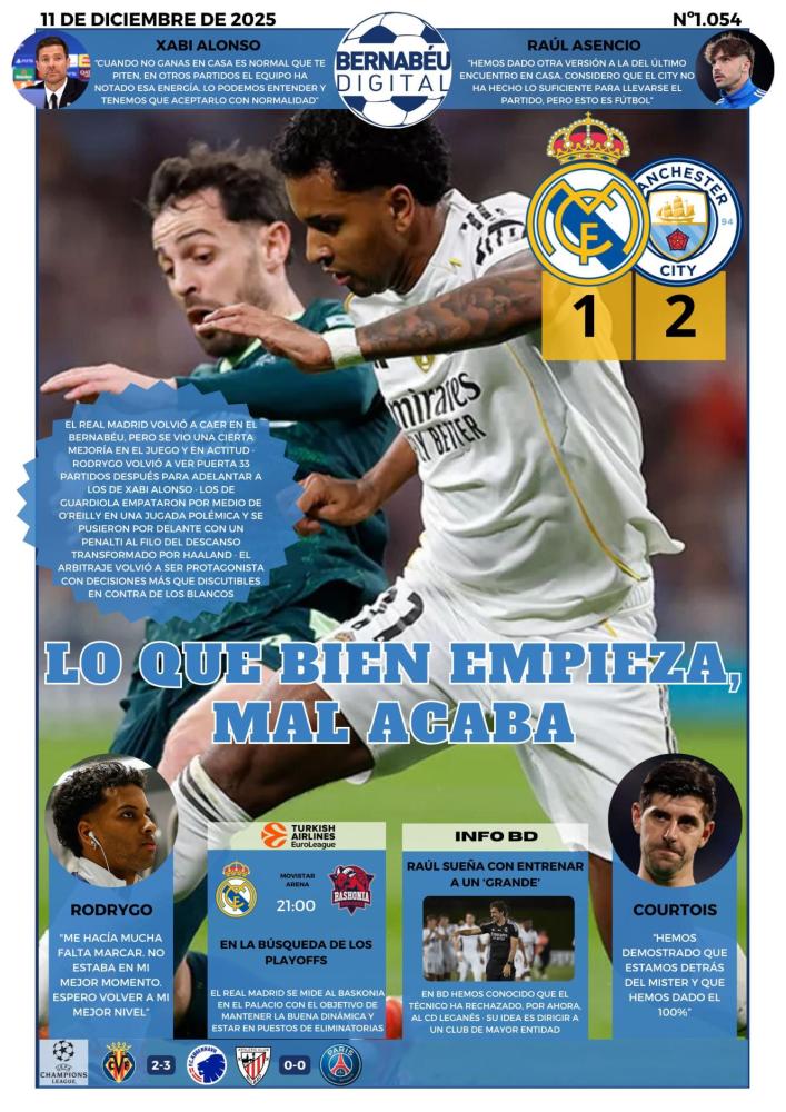 La Portada BD de hoy destaca la derrota del Real Madrid contra el Manchester City en el Santiago Bernabéu. El conjunto blanco ha caído por la mínima y suma dos únicos triunfos en los últimos ocho partidos.