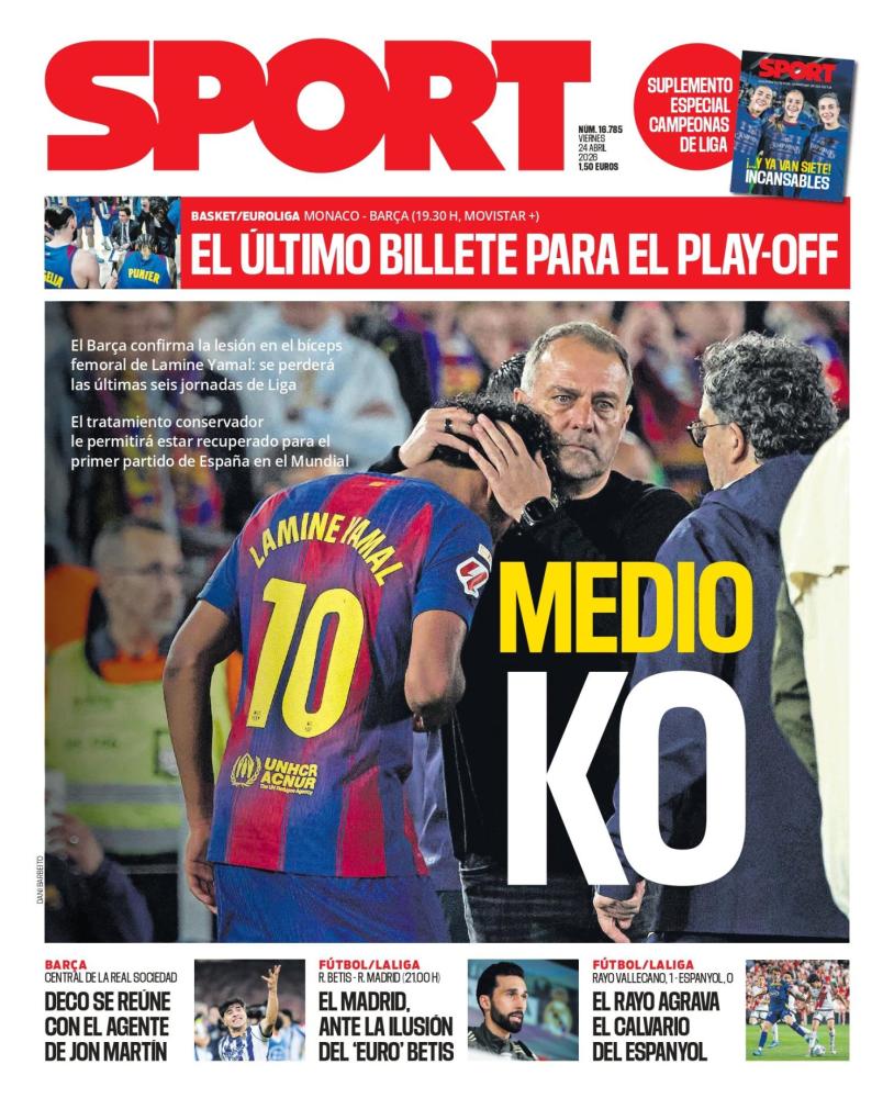 La dolorosa lesión que deja K.O a Lamine Yamal son las portadas de hoy