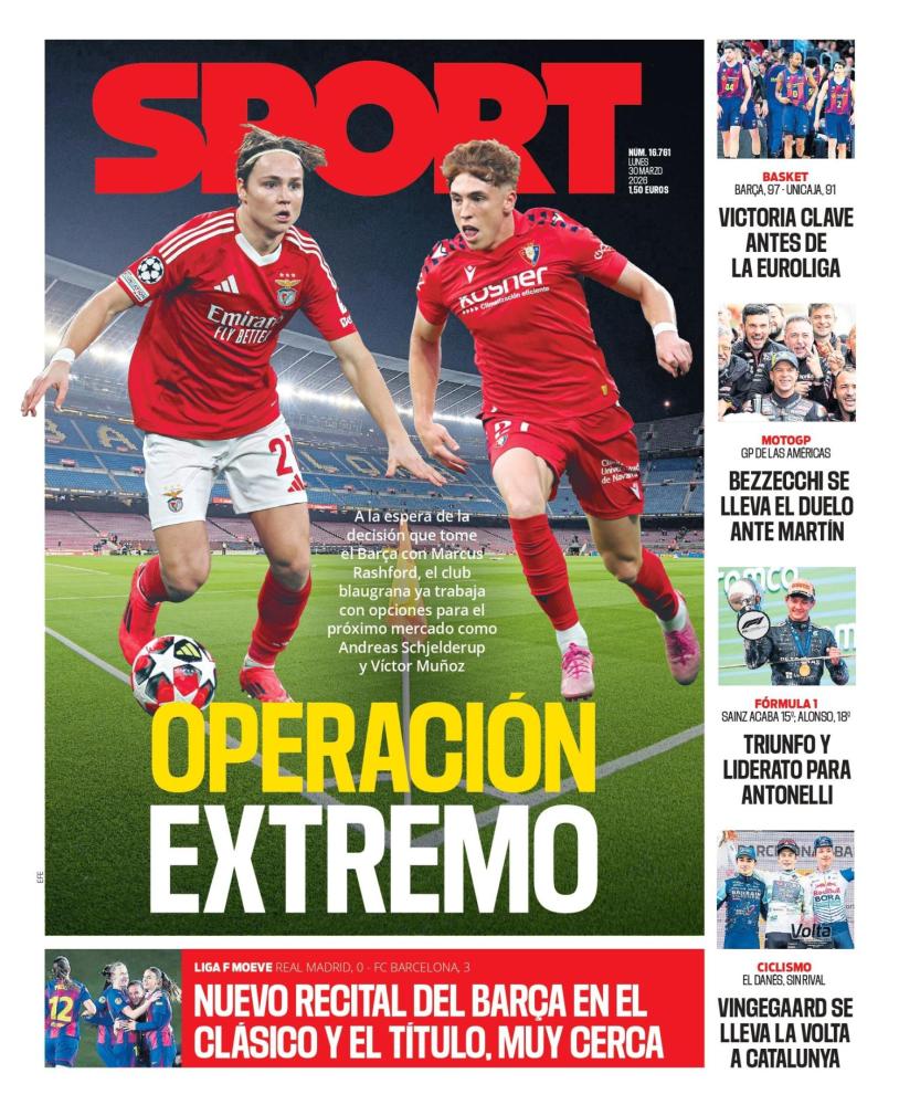 El Mundo Deportivo hace hincapié en primera página la victoria de la sección femenina de fútbol del FC Barcelona que ayer venció de nuevo al Real Madrid en el encuentro correspondiendo a la jornada de liga.