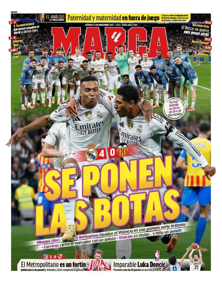 La goleada del Real Madrid al Valencia copa las portadas deportivas