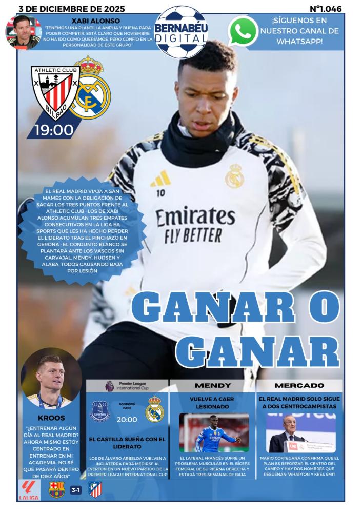 En nuestra portada del miércoles 3 de diciembre de 2025, en Bernabéu Digital hemos decidido abrir con la previa del Athletic Club - Real Madrid.