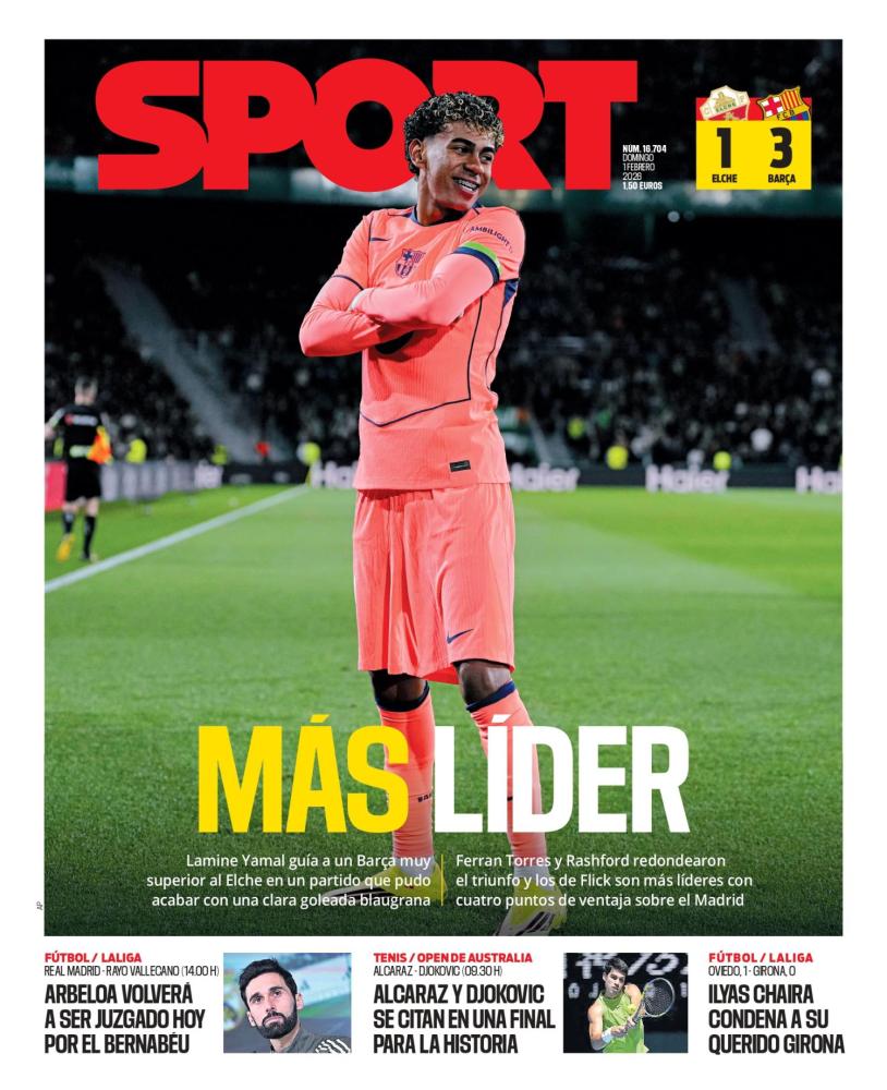 Sport saca como protagonista a Lamine Yamal, que ha guiado al Barcelona en la victoria ante el Elche por 1-3.