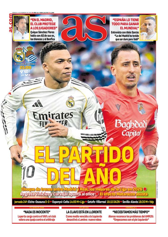 Por parte del AS, sacan en portada el partido del Real Madrid frente a la Real Sociedad, pues ambos equipo son los mejores de LaLiga en lo que llevamos de 2026.