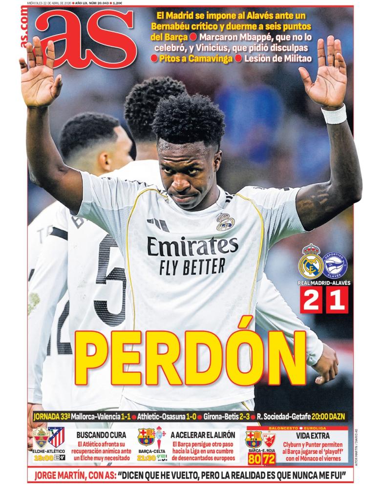 Las disculpas de un Vinicius goleador son las portadas de hoy
