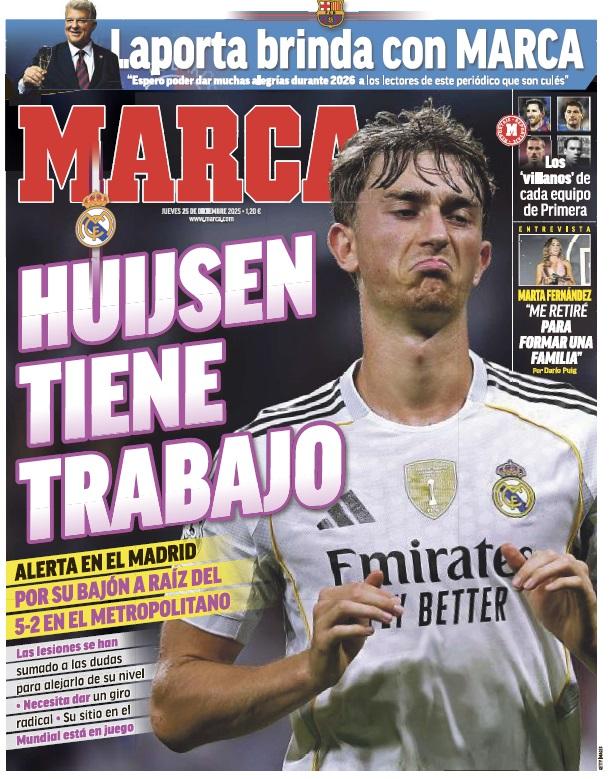 Las portadas deportivas destacan el bajón de Huijsen, entrevista a Fermín...