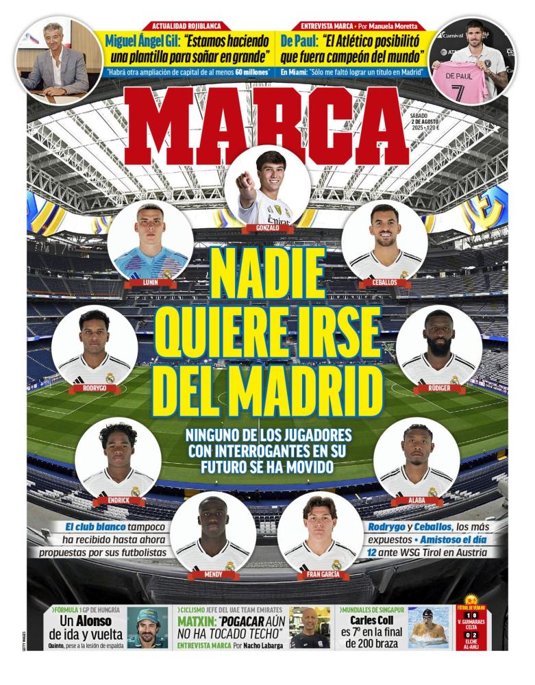 El diario Marca saca en primera plana este mercado de fichajes del Real Madrid, pero en el término de ventas, ya que ningún jugador ha salido todavía de la disciplina madridista pese a haber varios interrogantes en este sentido.