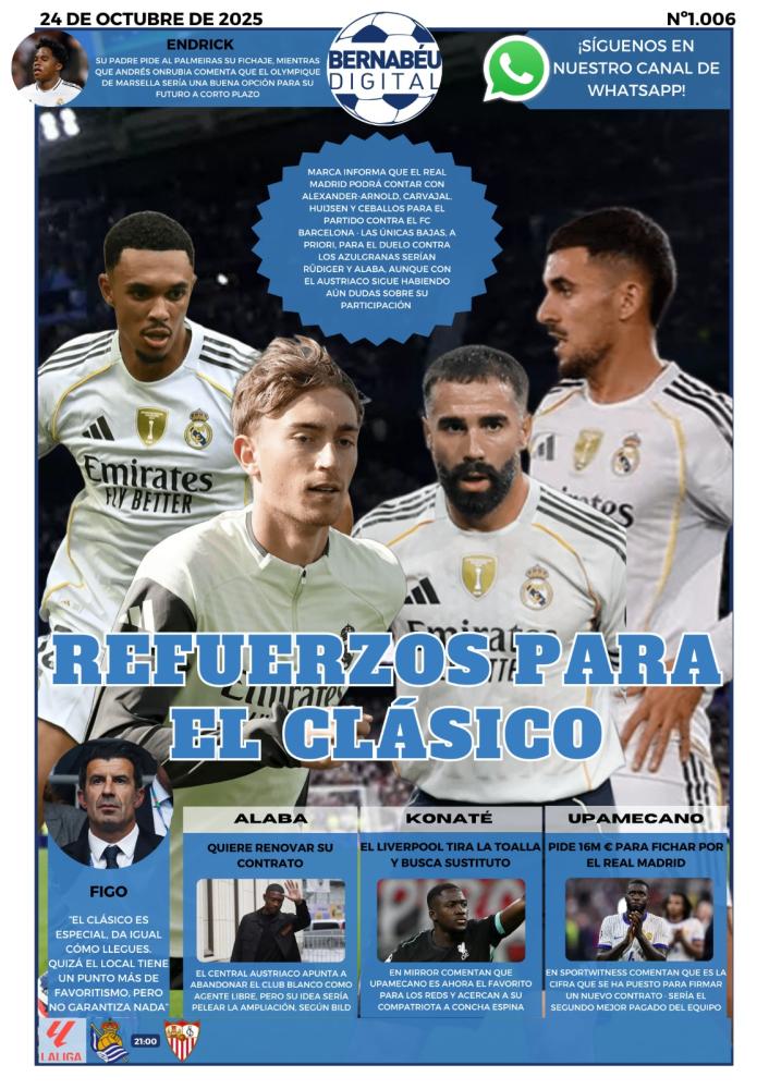 En la portada BD de este viernes destacamos los futbolistas que el Real Madrid recuperará para el partido contra el FC Barcelona de este domingo en el Santiago Bernabéu.