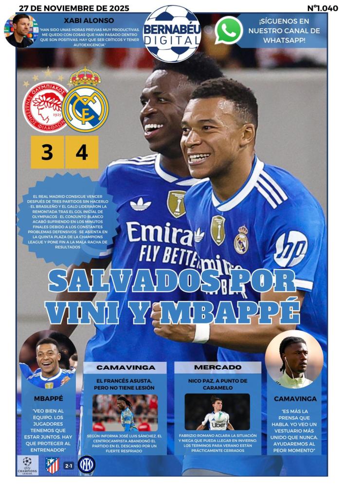 La Portada BD de hoy presenta la victoria por la mínima del Real Madrid en Grecia.