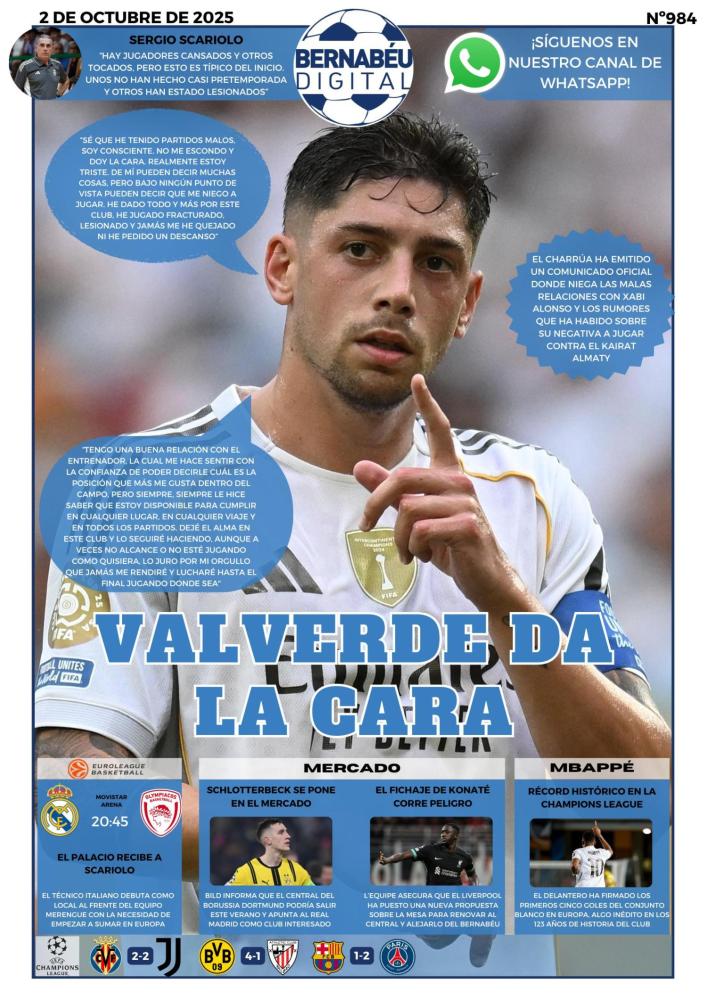 El comunicado de Federico Valverde protagoniza la Portada BD de hoy.